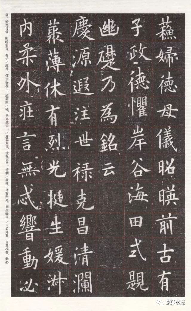 庆源遐注,世禄克昌。清澜藂(丛)薄,休有烈光。挺生媛淑,内柔外庄。言无忒响,动必