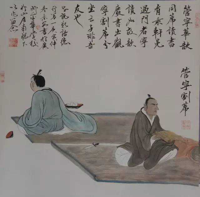 《世说新语·德行》:管宁、华歆尝同席读书,有乘轩冕过门者,宁读如故,歆废书出看,宁割席分坐曰:“子非吾友也。”