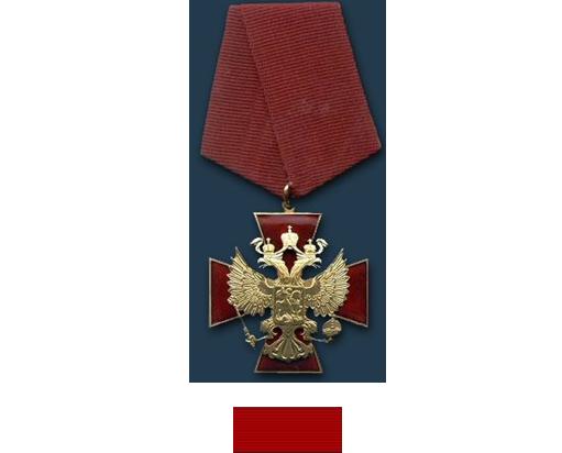 勋章是银质镀金红宝石珐琅十字架,正面印有俄罗斯联邦的镀金国徽,十字架的背面是一个圆形,周围环绕着“利益、荣誉、荣耀”(俄文:ПОЛЬЗА, ЧЕСТЬ И СЛАВА)。勋章中心有设立年份“1994”。十字架下臂的背面是月桂叶和勋章序列号。