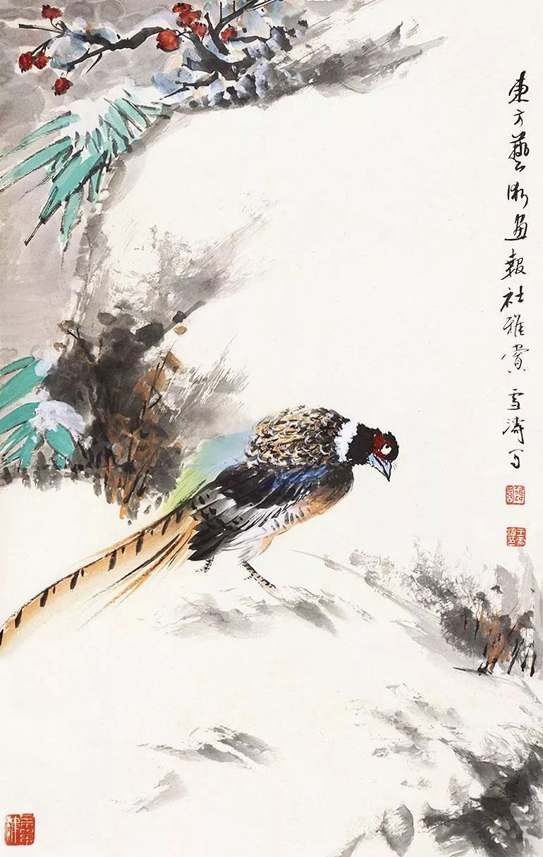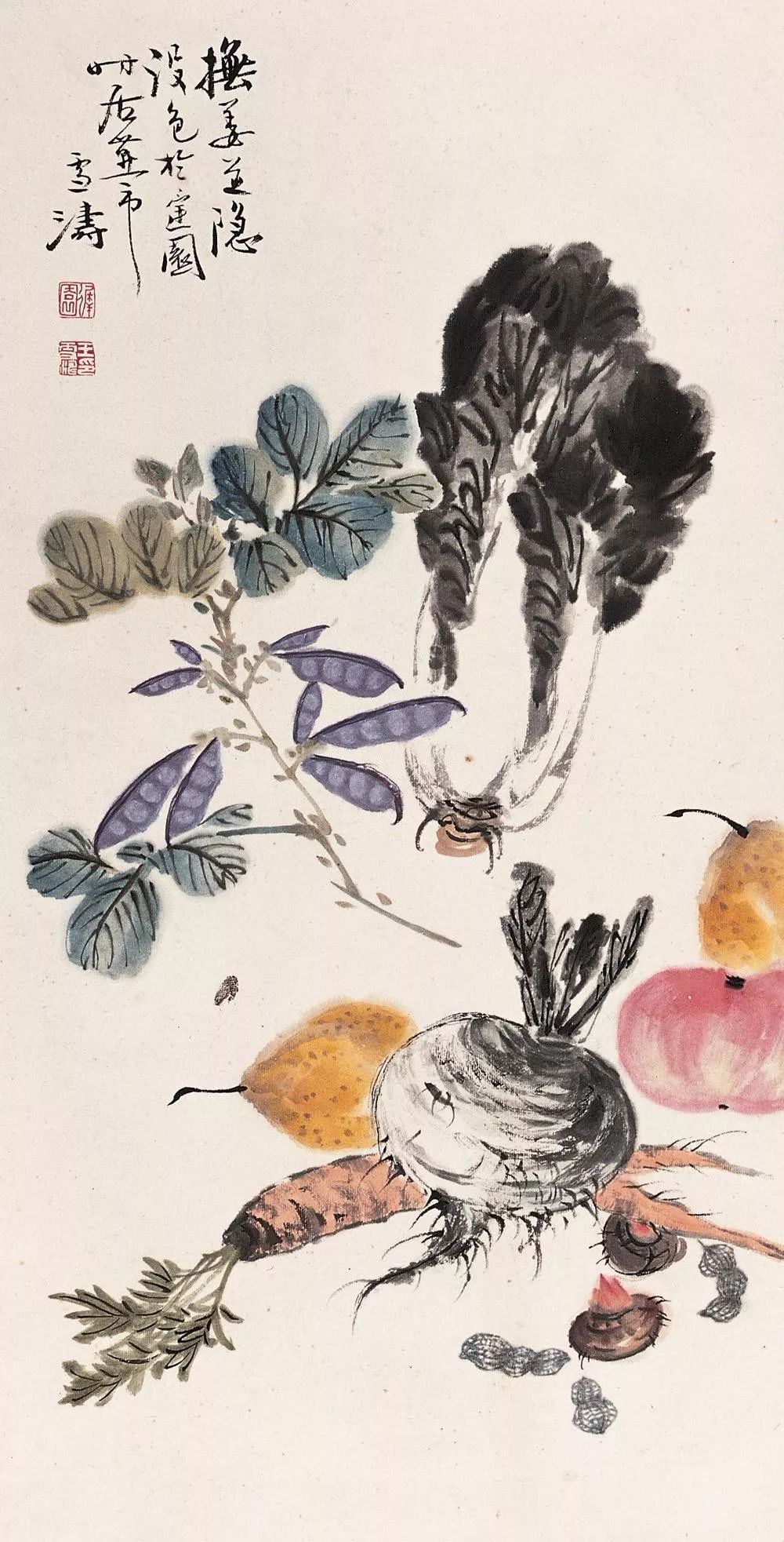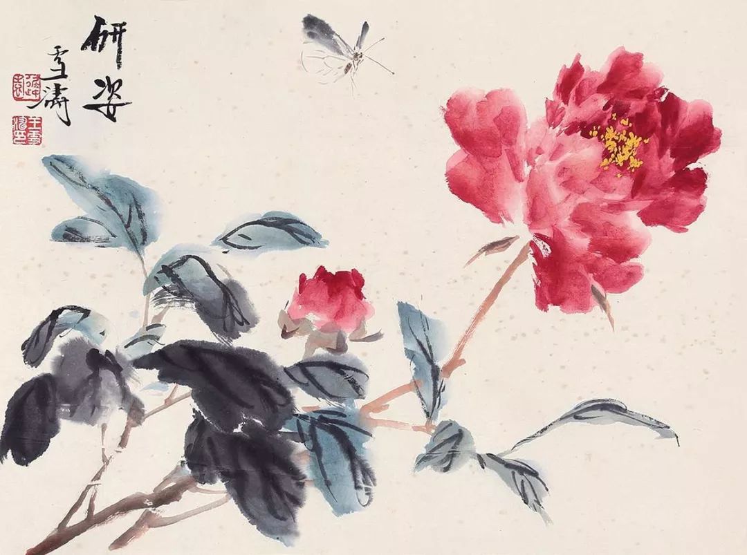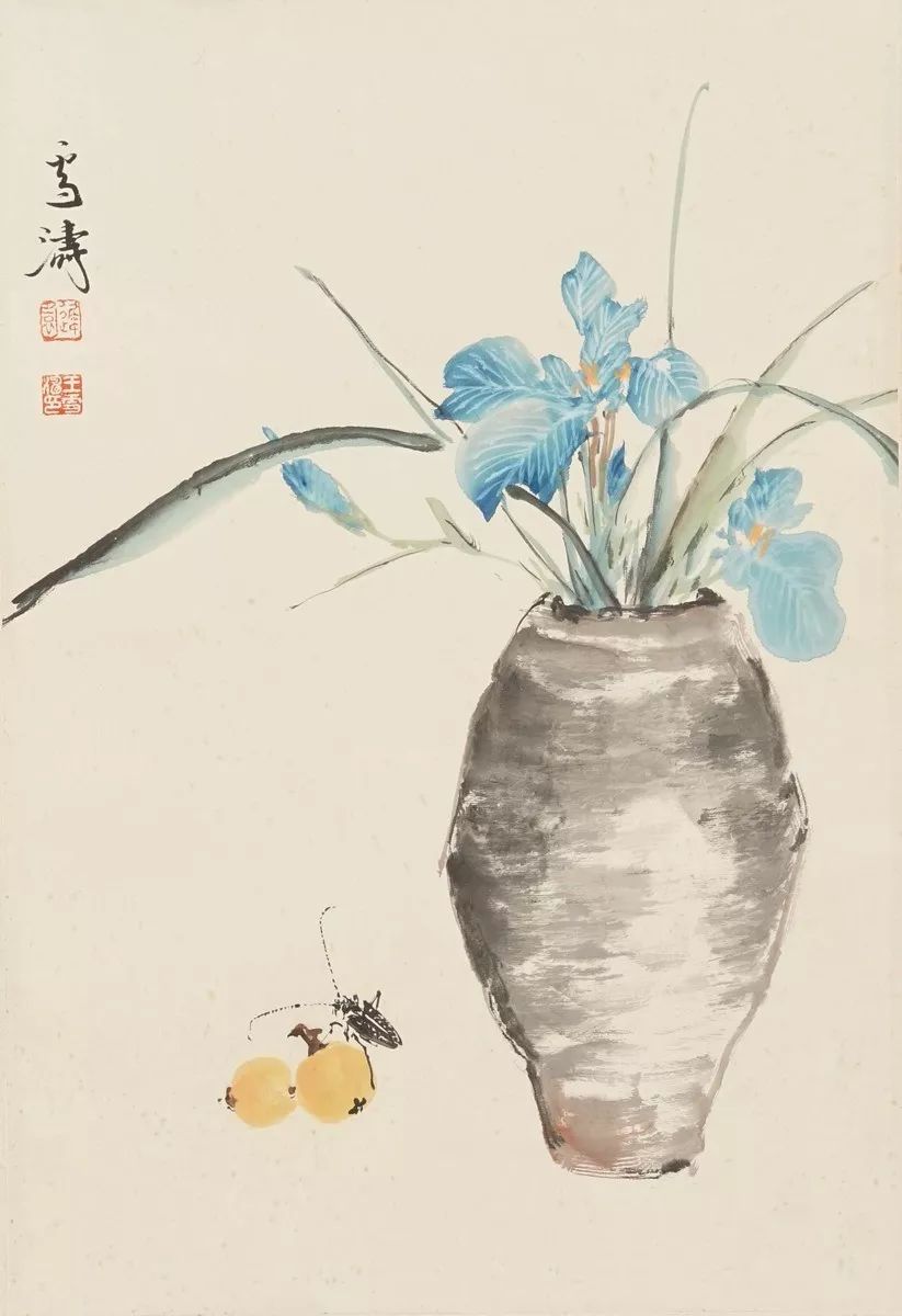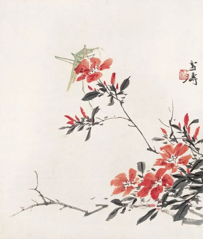 1933年,题其书画合璧册道: 吾贤下笔如人意,羡汝成名鬓未丝。 次年又题作: 蓝已青矣。 可见在白石老人心里,青年王雪涛已是位置高标了。王雪涛的绘画取材丰富,笔墨沉著又飘逸,设色秾艳却和谐,兼工带写,时常也借鉴西画之图式与手段,但却毫无刻露之习。