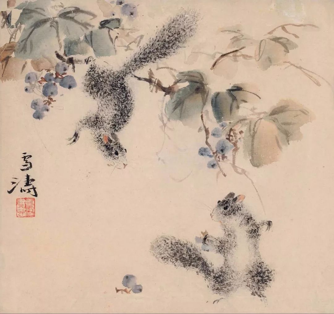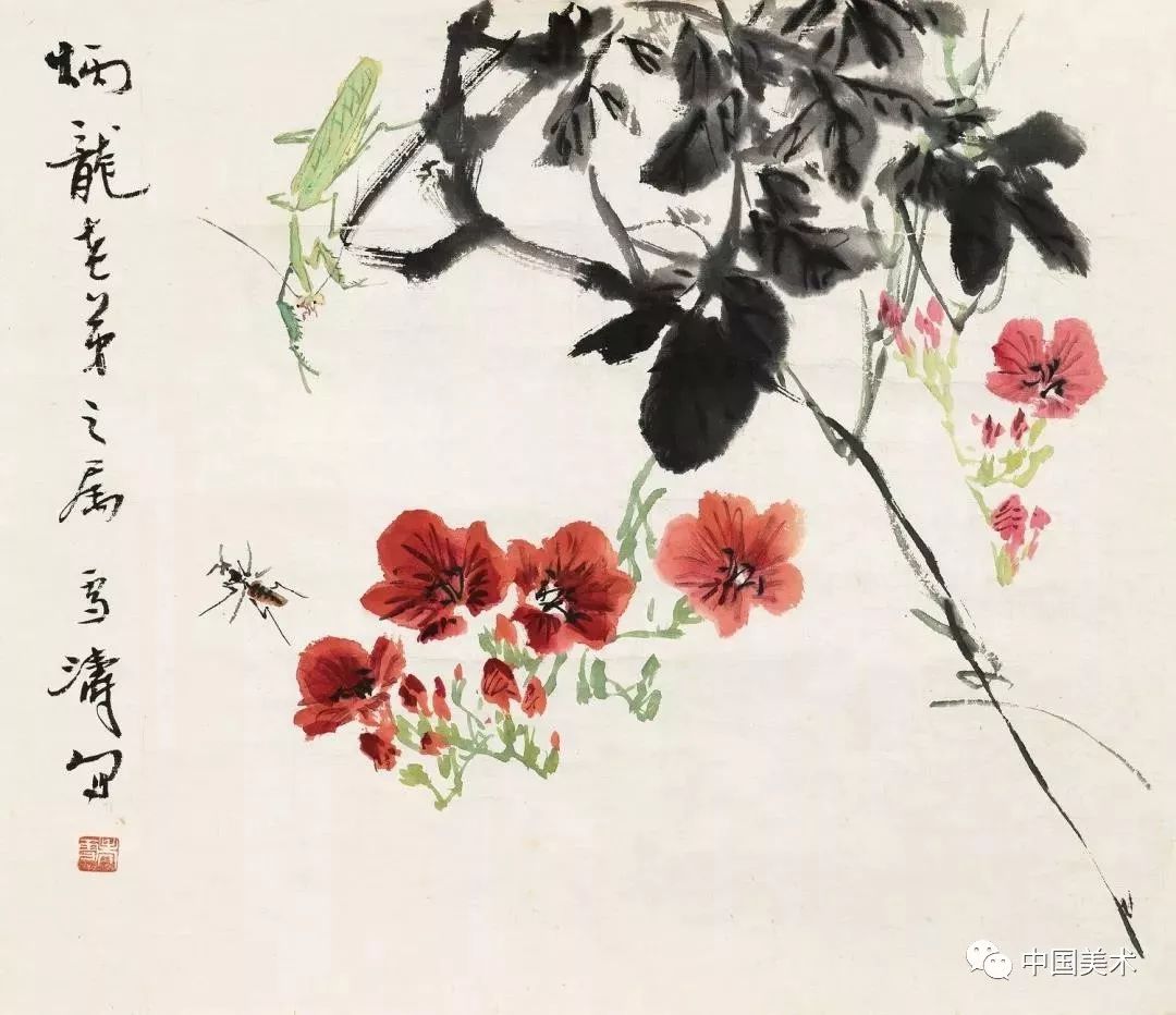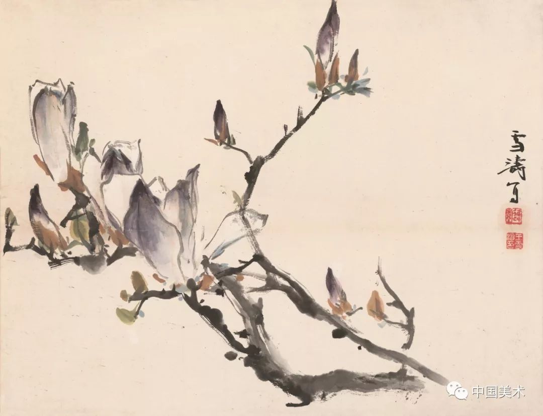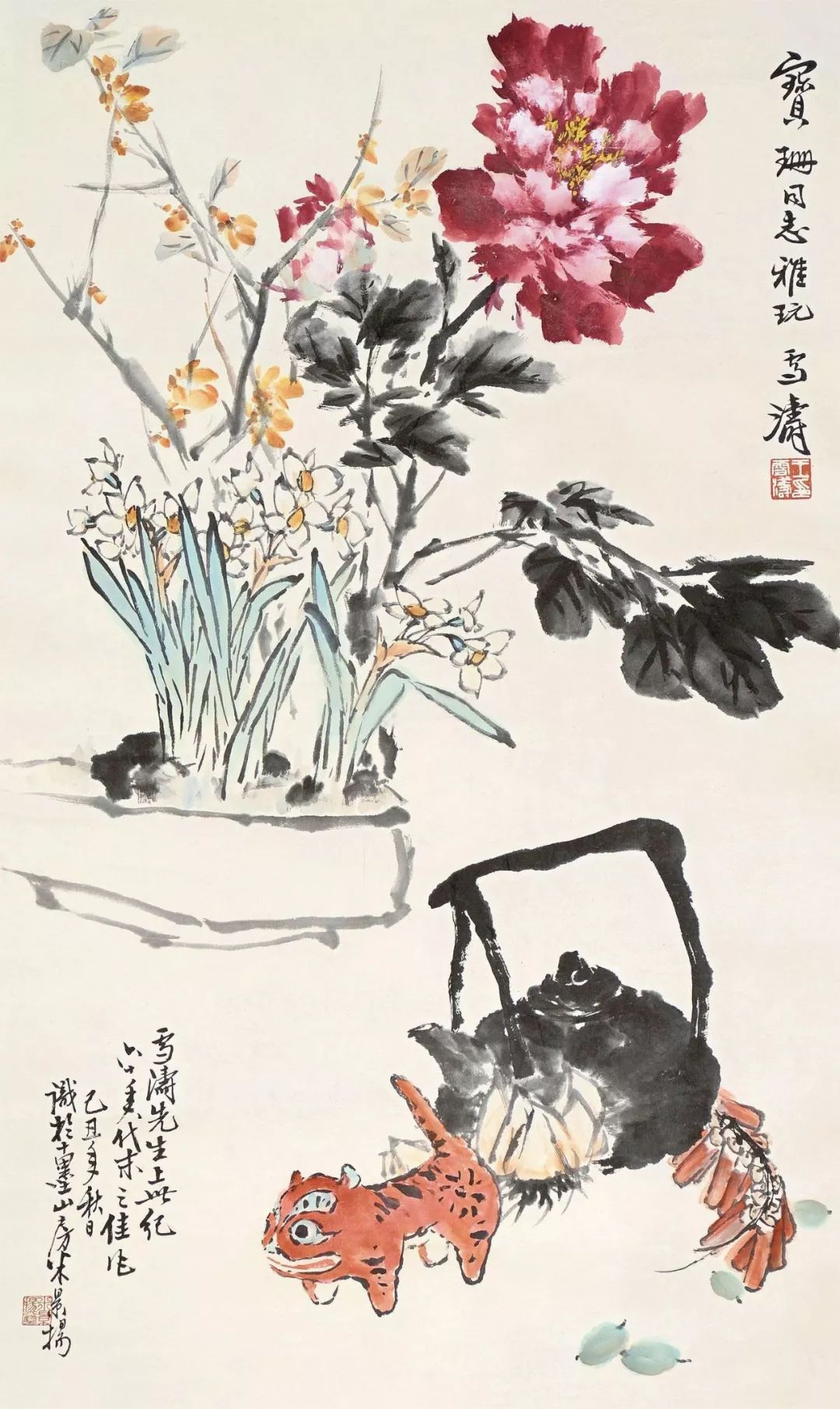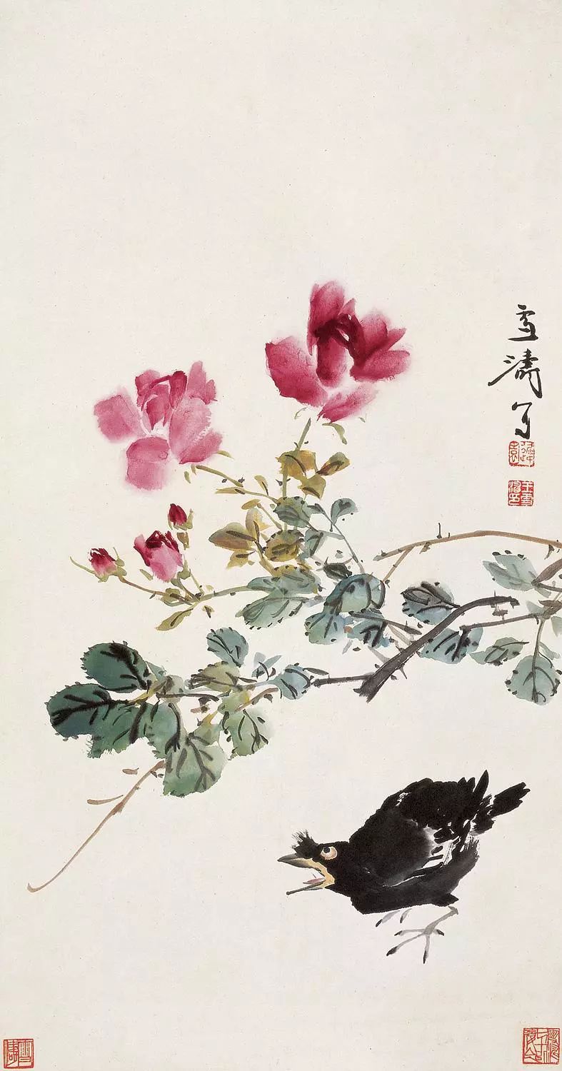 1933年,题其书画合璧册道: 吾贤下笔如人意,羡汝成名鬓未丝。 次年又题作: 蓝已青矣。 可见在白石老人心里,青年王雪涛已是位置高标了。王雪涛的绘画取材丰富,笔墨沉著又飘逸,设色秾艳却和谐,兼工带写,时常也借鉴西画之图式与手段,但却毫无刻露之习。