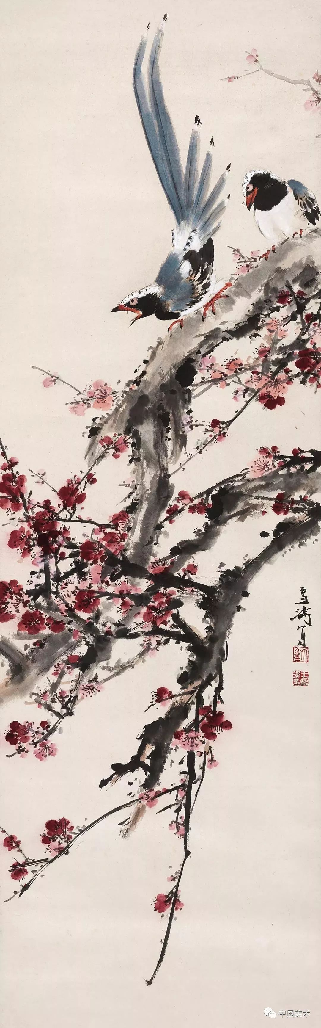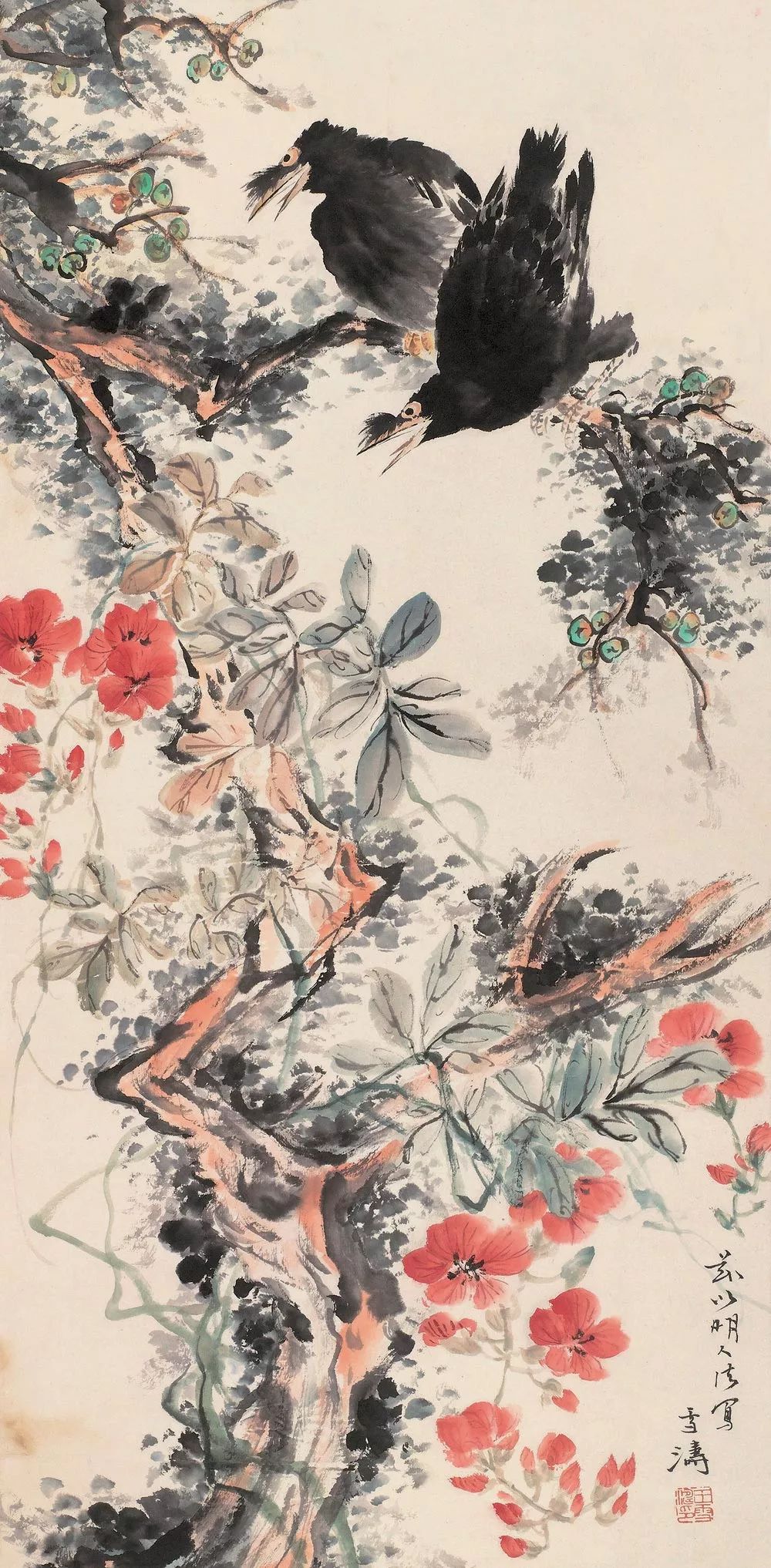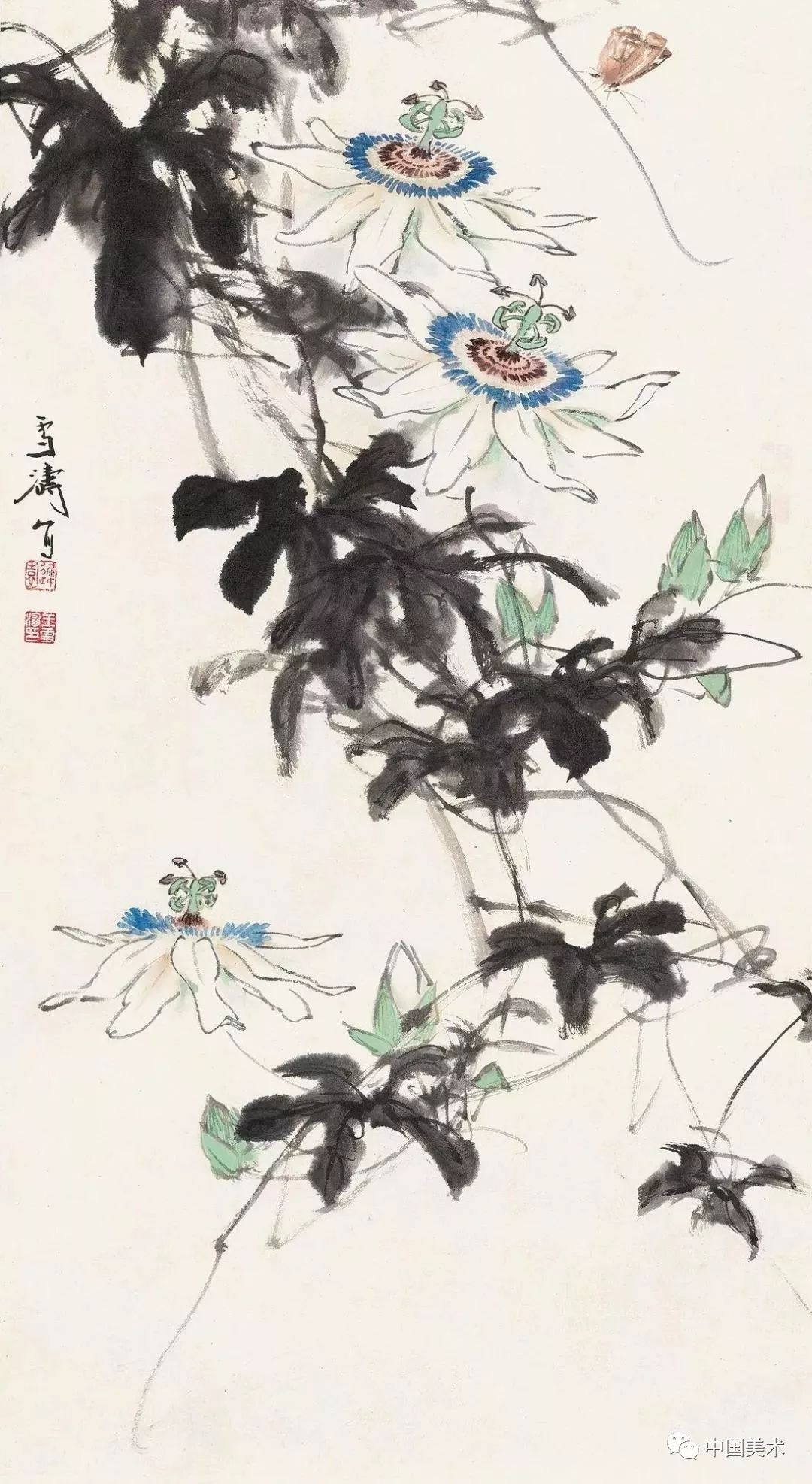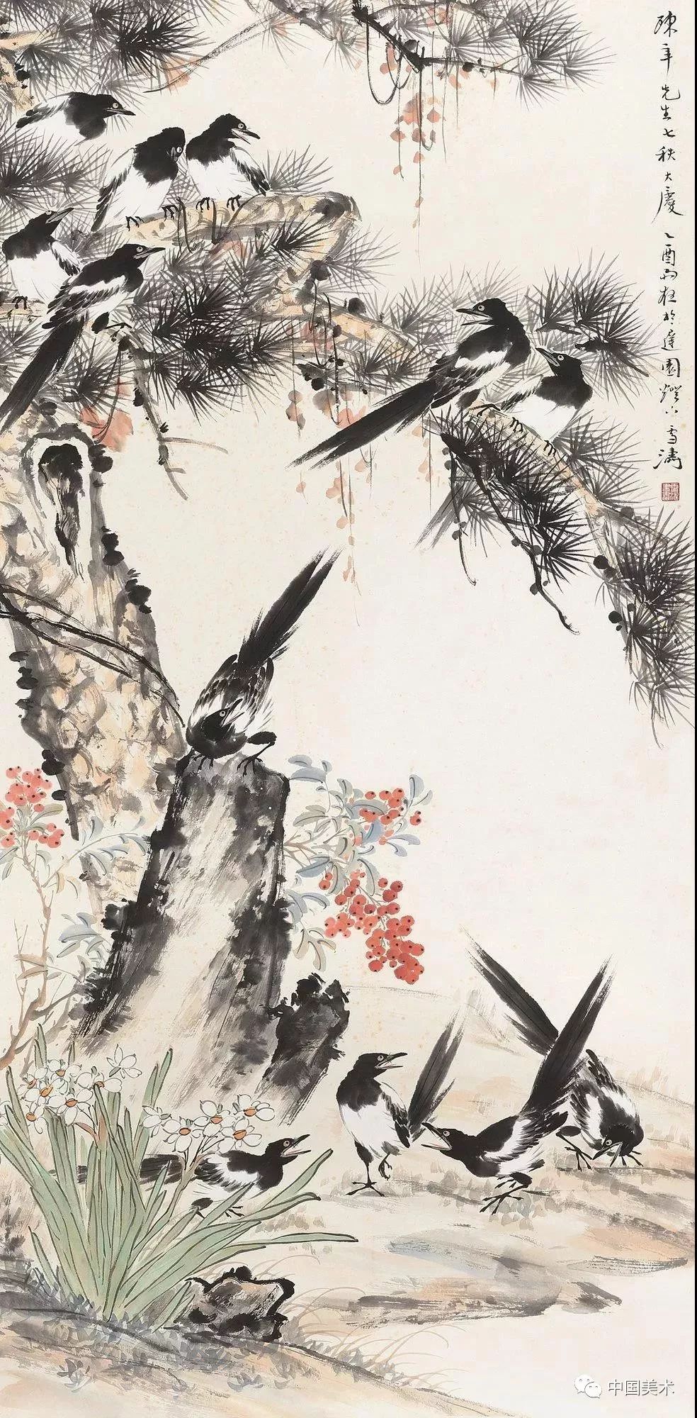 1933年,题其书画合璧册道: 吾贤下笔如人意,羡汝成名鬓未丝。 次年又题作: 蓝已青矣。 可见在白石老人心里,青年王雪涛已是位置高标了。王雪涛的绘画取材丰富,笔墨沉著又飘逸,设色秾艳却和谐,兼工带写,时常也借鉴西画之图式与手段,但却毫无刻露之习。