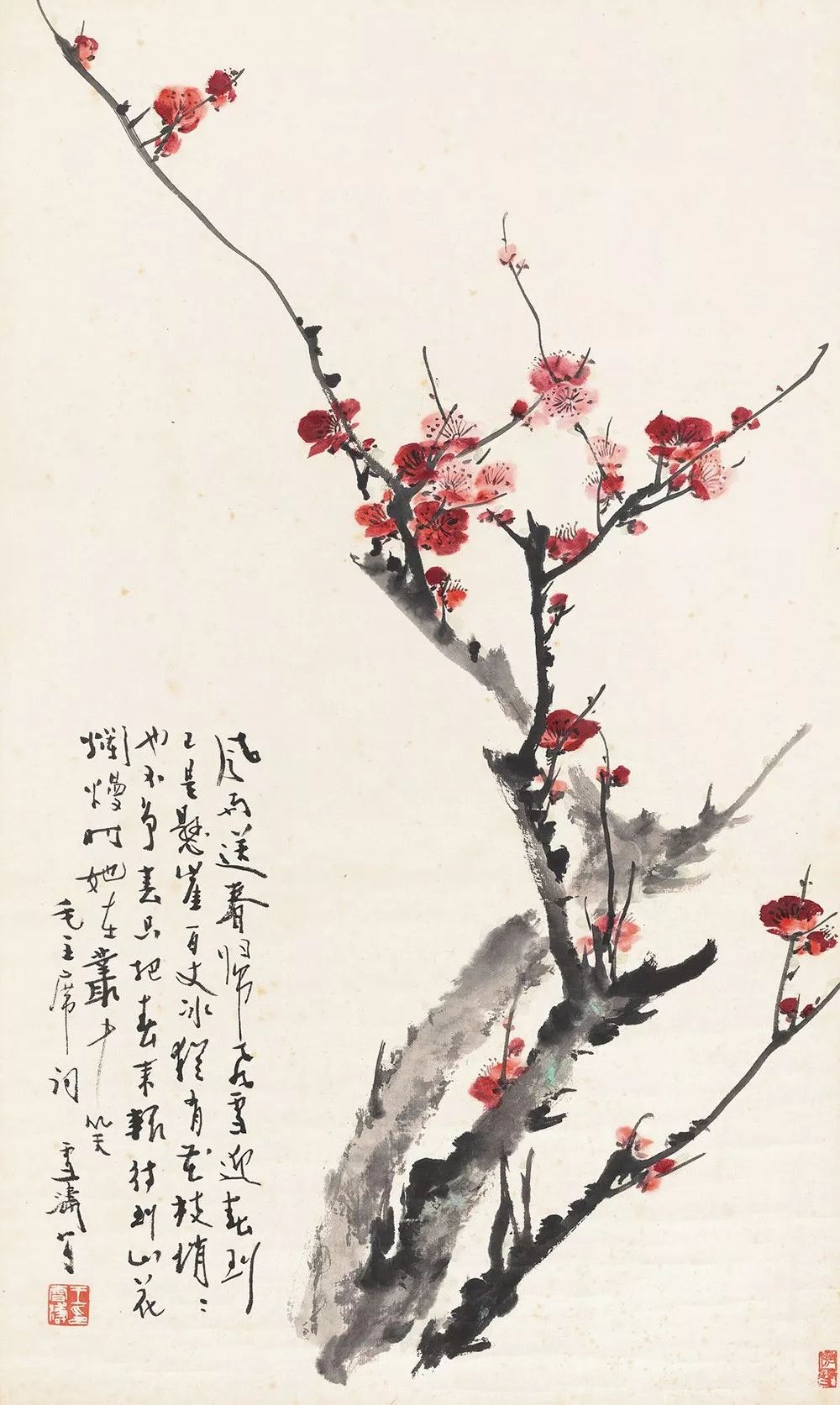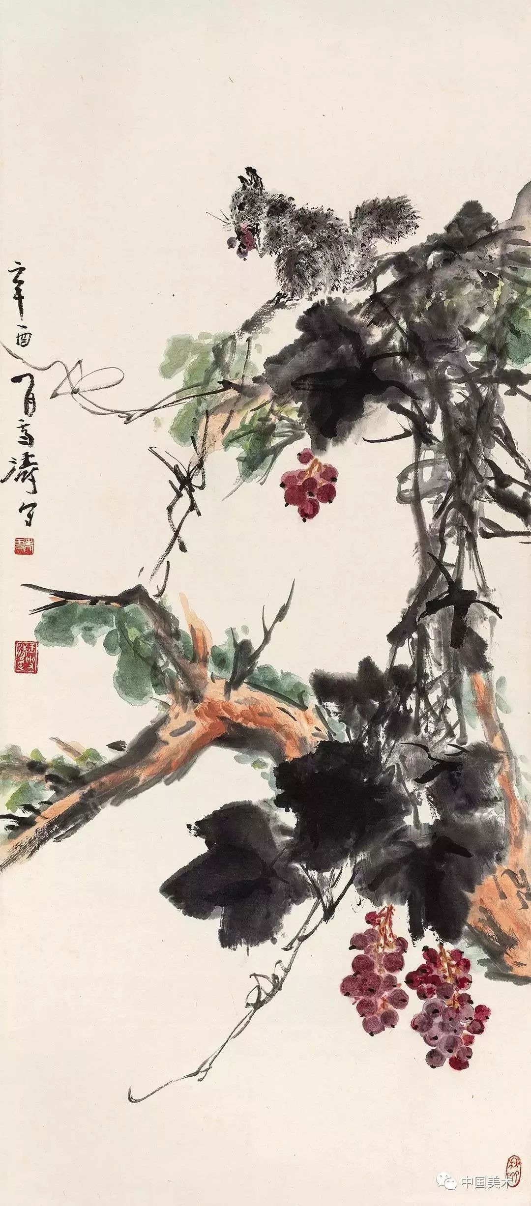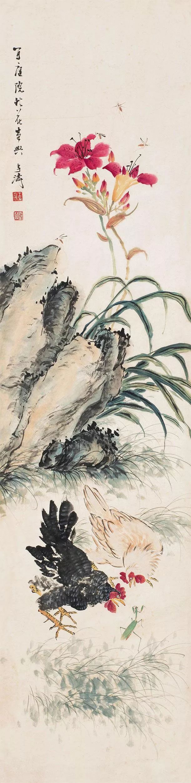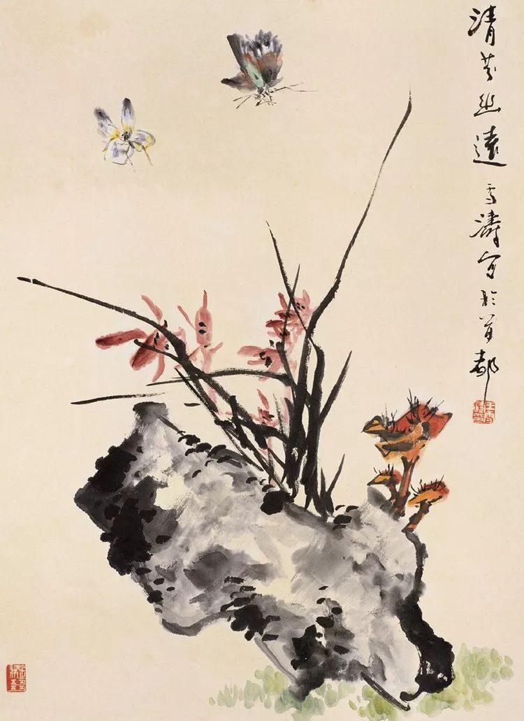1933年,题其书画合璧册道: 吾贤下笔如人意,羡汝成名鬓未丝。 次年又题作: 蓝已青矣。 可见在白石老人心里,青年王雪涛已是位置高标了。王雪涛的绘画取材丰富,笔墨沉著又飘逸,设色秾艳却和谐,兼工带写,时常也借鉴西画之图式与手段,但却毫无刻露之习。