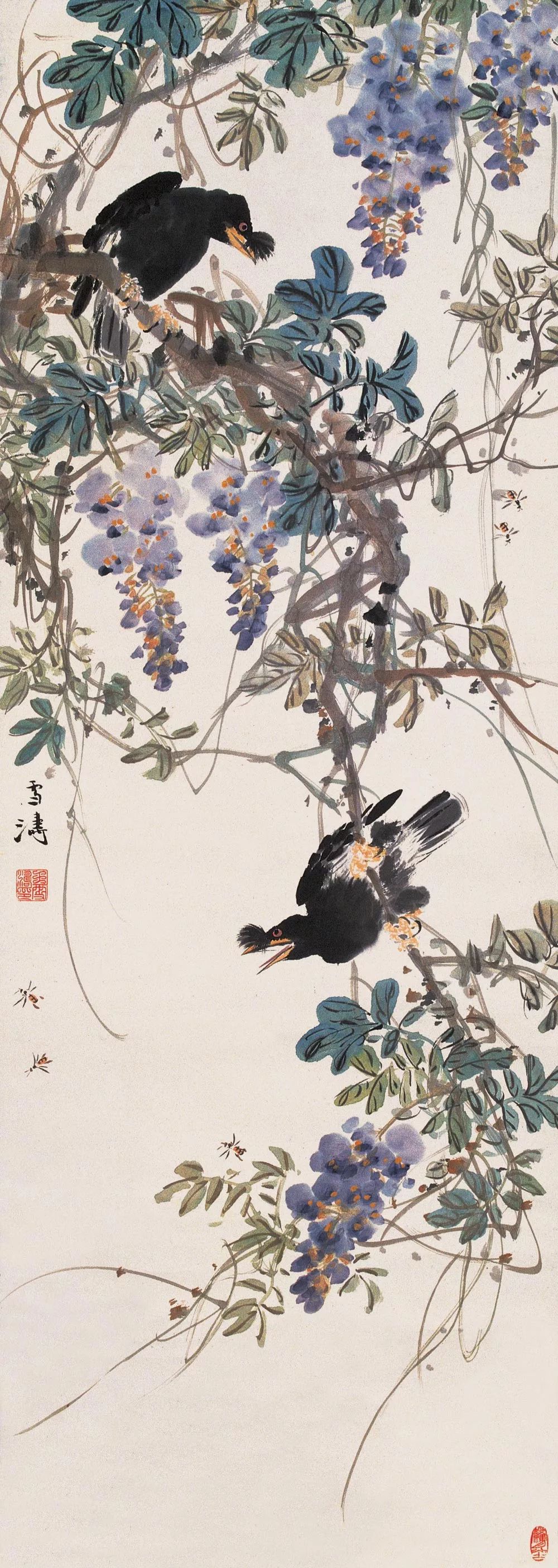 王雪涛(1903—1982),原名庭钧,字晓封,号迟园,河北成安人,自幼喜绘画,中国现代著名小写意花鸟画家,先后受教于陈师曾、萧谦中、汤定之、王梦白等诸位前辈,尤受王梦白影响最大。1924年拜齐白石为师,奉师命改名雪涛。后又从王梦白学小写意花鸟。1980年任北京画院院长。历任中国美术家协会理事、美协北京分会副主席、北京花鸟画会会长。