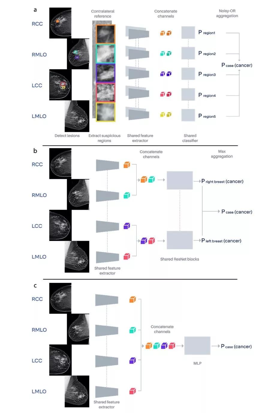 值得注意的是,谷歌此次研发的这种深度学习模式,整合了三种不同的神经网络,等于同时有三位“”人工智能大夫”在为病人会诊。而三种神经网络,都在以不同的方式识别乳房X光检查影像中可疑的区域,并对这些发现进行分析,最终进行概率判定,产生一个从0(非癌症)到1(确诊癌症)的分数代表存在癌症的可能性。