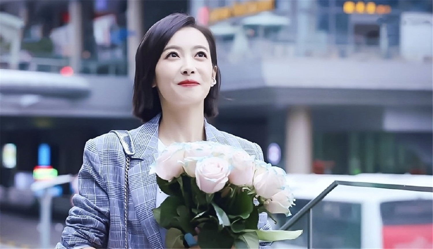 除了衬衫,职场女性不可少的就是西装外套了,灰色格子复古时尚,搭配一件白色T恤简约大气,手捧鲜花笑容甜美的宋茜带给人满满的正能量,非常治愈。