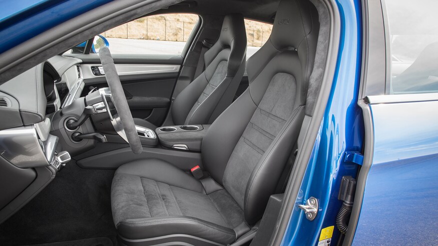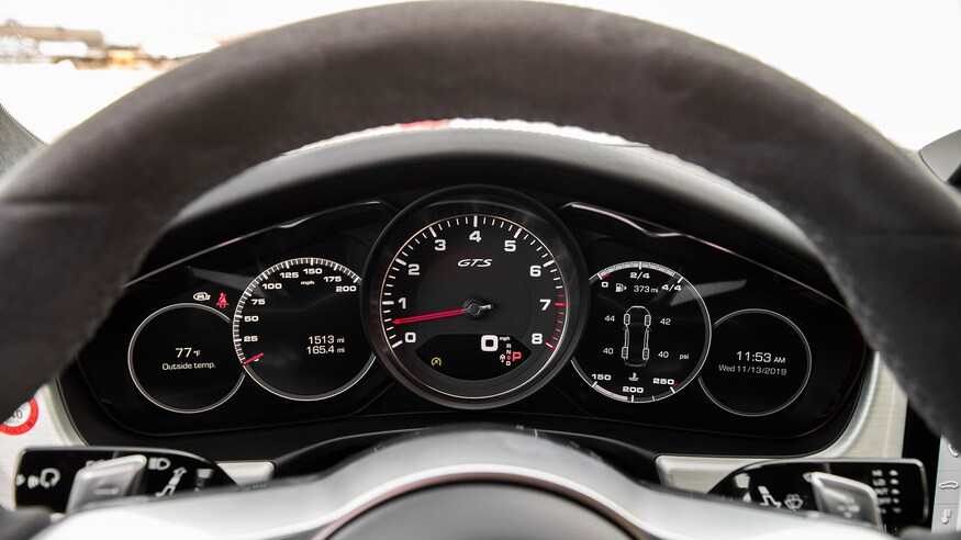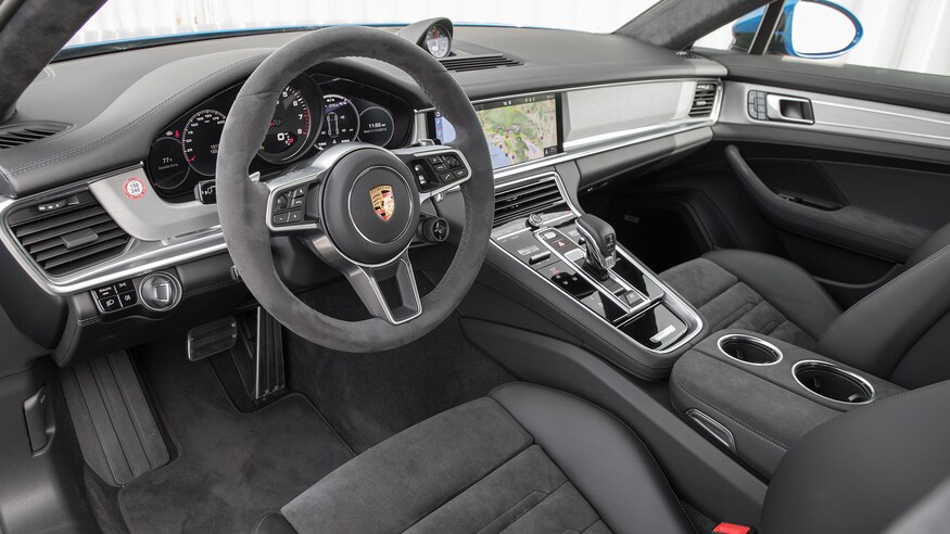 GTS拥有453马力,457磅-英尺的4.0升双涡轮V8发动机版本,以及全轮驱动,保时捷Sport Chrono系统和PASM悬架,阻尼率稍高,行驶高度比普通Panamera低。其他标准功能包括缎面黑20英寸车轮,运动型排气装置和18向自适应运动型座椅。另外,当然还有黑色的GTS徽章。当您将排气切换到运动模式时,听起来很响。3.3秒内达到60 mph,这辆4,669磅重的保时捷比去年的630 hp 奔驰 -AMG GT 63 S四门跑车慢了0.1秒。尽管速度很快,但是Panamera GTS第一次给人留下深刻印象的地方就是斯文的感觉。Panamera GTS的空气悬架提供了令人印象深刻的乘坐舒适性,路面冲击性得到了很好的抑制。