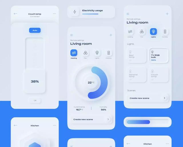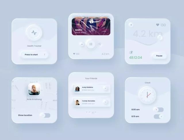 在视觉上,它回归拟物化,但是不会像拟物设计那样全盘模拟真实世界,而是通过恰当的高光阴影刻画出轻量的画面质感。