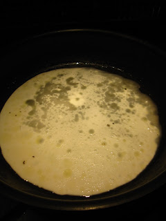 把整个煎翻过来的时候,又破了!是我的锅子问题还是粉皮比例不对?为什么老是会破啊?不过,虽然是支离破碎,看起来应该有比第一个好一点(吧)