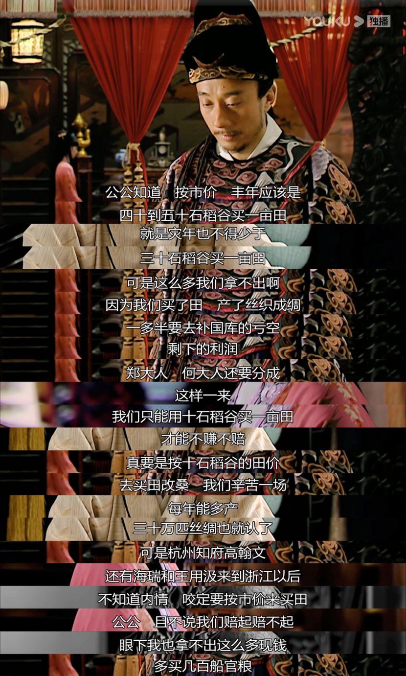 沈一石自己买了田、产了丝织成绸一多半要去补国库的亏空,剩下的利润还要给郑泌昌、何茂才以及京里严党的贪官们分成,只能与二人勾结用十石稻谷买一亩田,才能不赚不赔。而高翰文、海瑞、王用汲的到来,使得“十石稻谷买一亩田”的计划落空。
