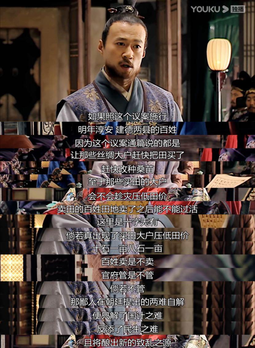 郑泌昌、何茂才等浙江的大小官员让高翰文认可他们贱买灾民田地的议案。高翰文看完,果然不出胡宗宪所说,议案通篇说的是如何让丝绸大户赶快把田买了,赶快改种桑苗。