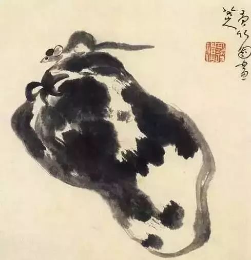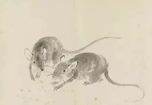 徐悲鸿的《十二生肖册》之《老鼠》中,两只小老鼠一前一后,弓着身子,忽闪着两对大耳朵,圆溜溜的眼睛中透露着顽皮。在徐悲鸿的画笔下,两个小家伙好像动了起来,逼真的神态跃然纸上。