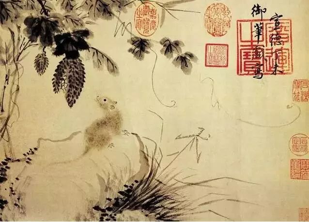 朱瞻基的鼠图是有意趣的写意画,他将机敏可爱的老鼠作为美好的艺术形象来描绘,使人忘记了鼠类可憎可怖的一面。