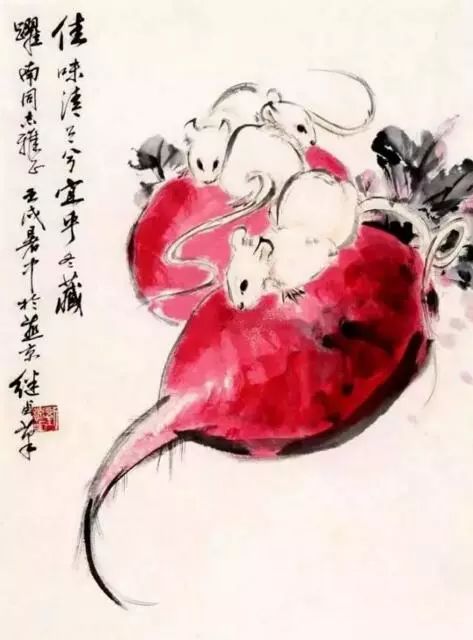 《诗经·鄘风·相鼠》有“相鼠有皮,人而无仪”之句,意思是说,看看老鼠尚且还有皮,而人却不知廉耻、礼仪。画家们从这些寻常所见的小生命里,感悟到许多人生哲理、道德品性、生活理念、艺术情趣。画鼠题材带给我们的,不仅仅是视觉上的体验,更蕴涵着博大深厚的文化内涵和人文精神。