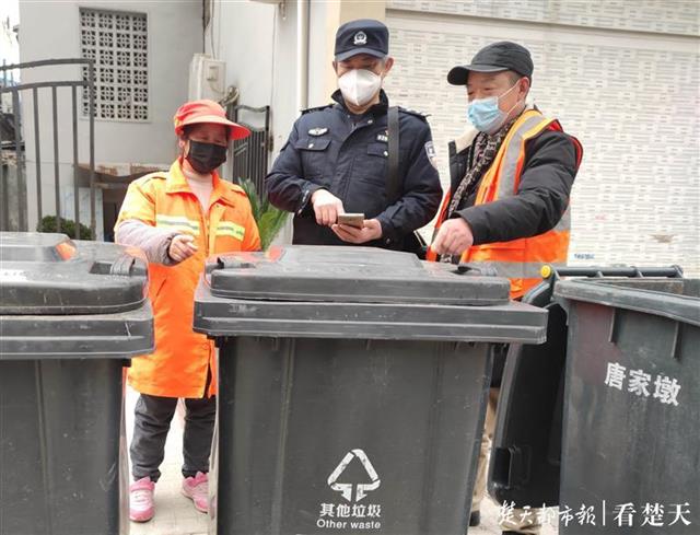 唐家墩街派出所民警,在询问环卫工人的社区人员的情况