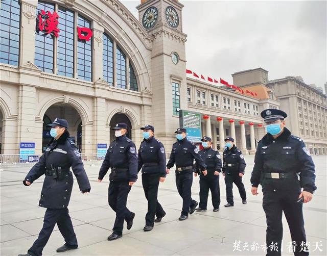 派出所民警协警,在汉口火车站站前广场巡逻