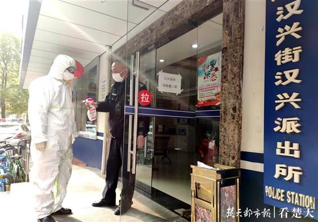 汉兴街派出所民警,协助社区移交隔离观察病人后,回所及时消毒