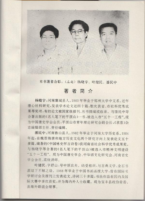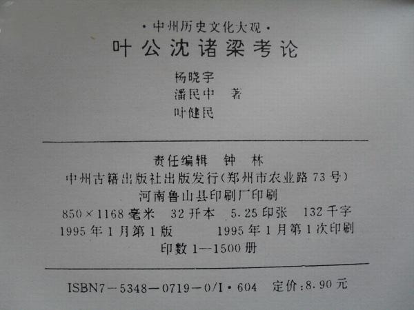 舒山先生同潘民中先生与杨晓宇先生合著的叶公沈诸梁考论,于1995年发行,为国内外有关叶公沈诸梁的第一本专著论述。