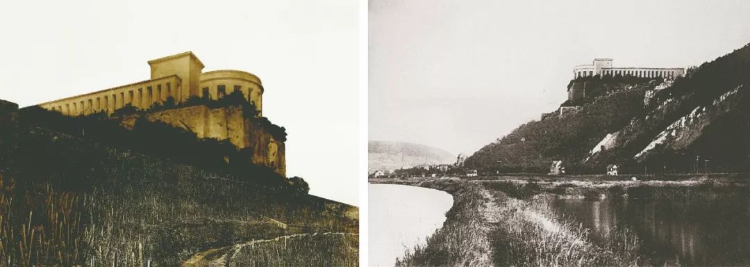 俾斯麦纪念馆方案 | 将建筑模型按照环境照片的角度拍摄照片,然后将二者拼贴,构成真实场景中的建筑表现 |