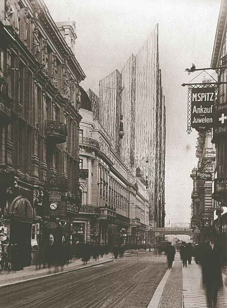 ▲ 柏林高层玻璃大厦模型拼贴(1910年)