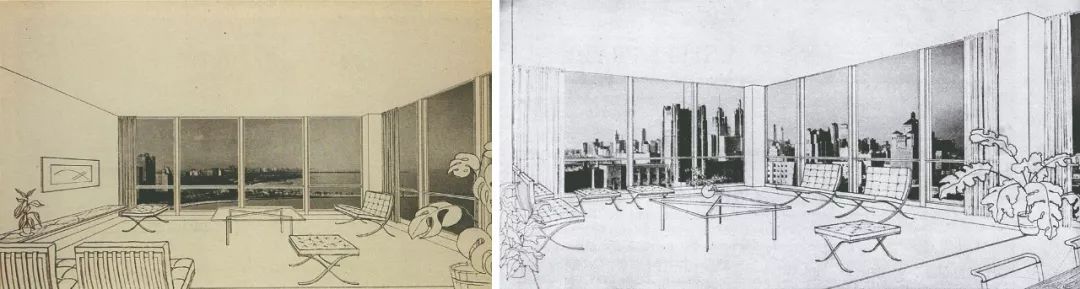 ▲ 芝加哥湖滨公寓室内空间拼贴(1950年)
