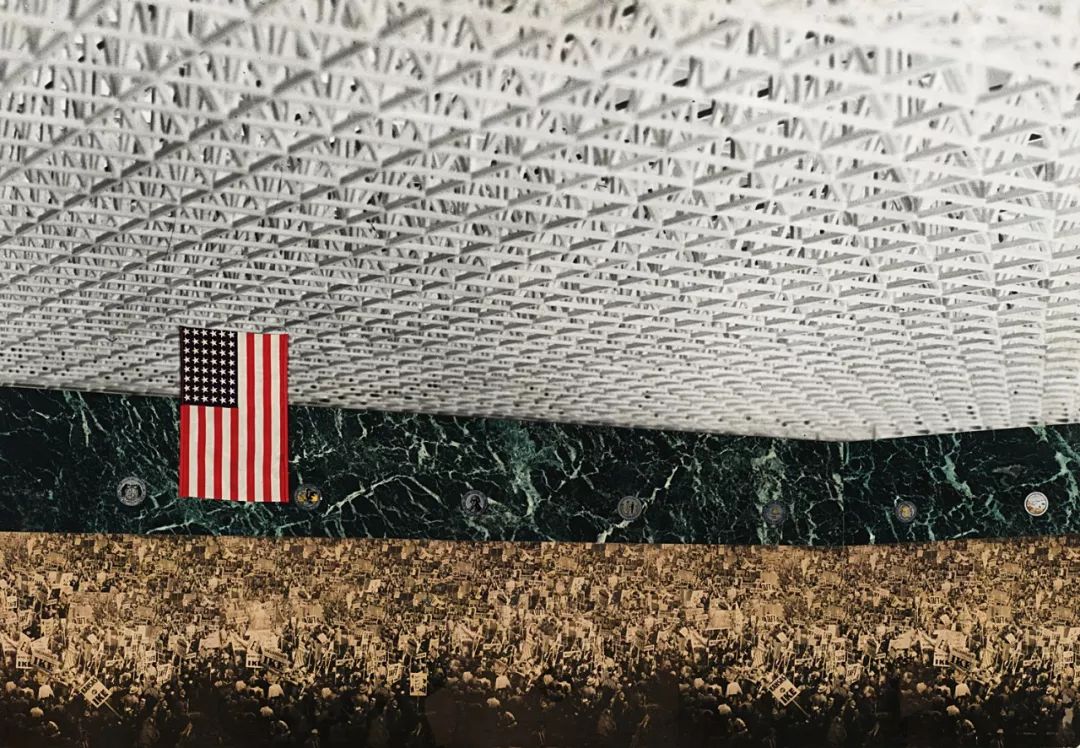 芝加哥会议中心 | 摄影拼贴:摄影影像拼贴,加入墙体、绘画、雕塑、人群、国旗等 |