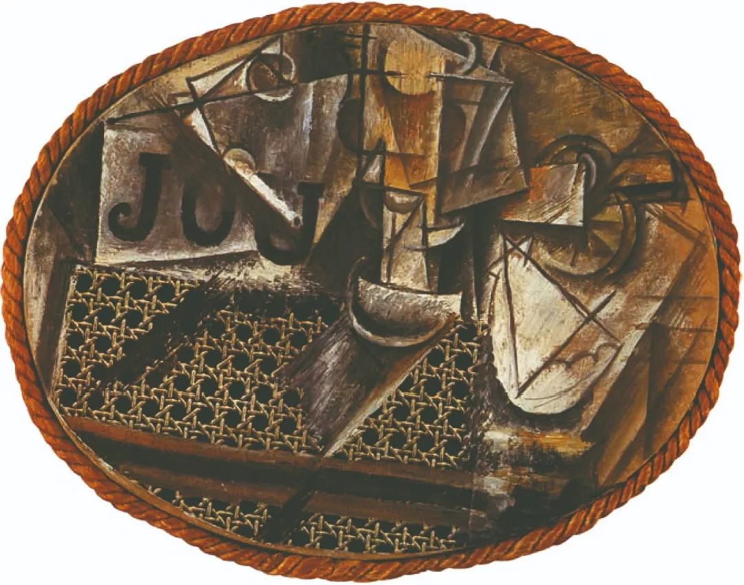 ▲ 毕加索的拼贴作品《椅藤之静物》(1912年)