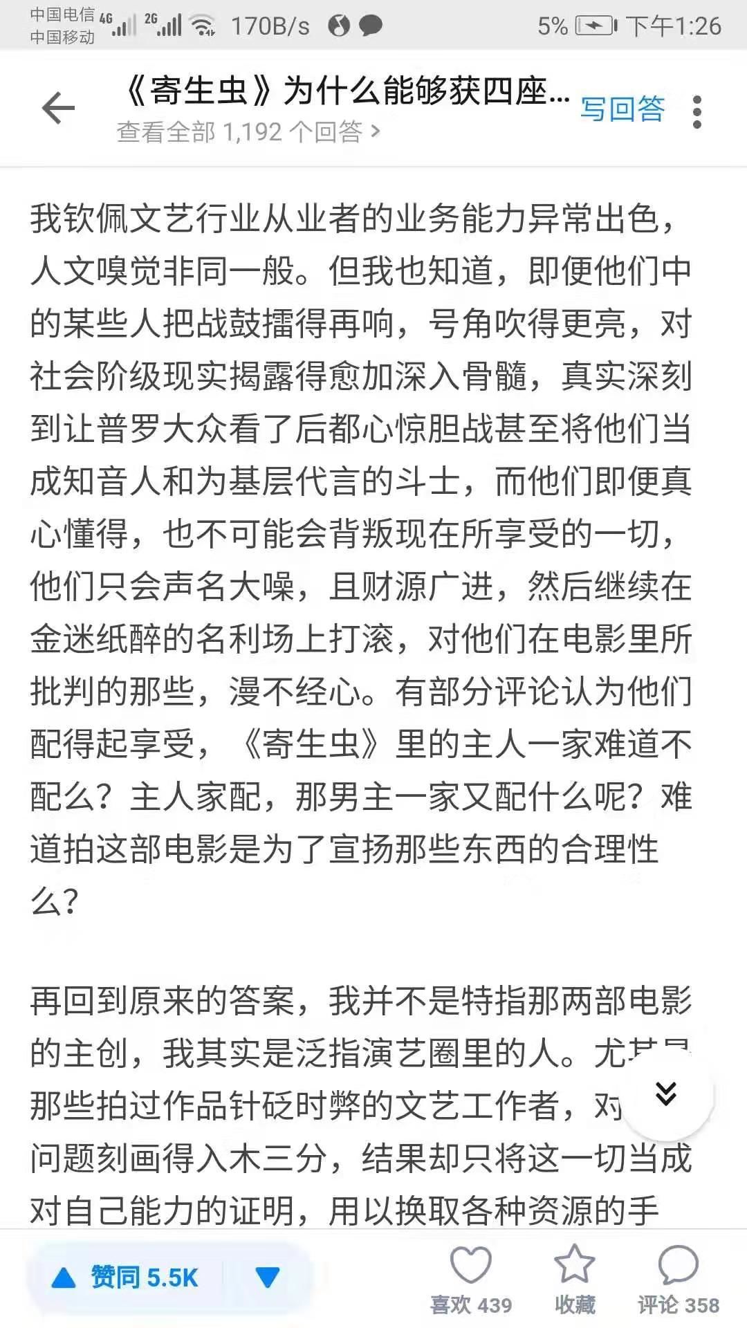 但他的身份和它能拍出这部《寄生虫》,以及《寄生虫》能获奖有什么关系吗?甚至你也可以说,它的获奖只是一次精英阶级的自我反思。电影提供的是思考:贫穷怎么消灭?穷人怎么办这类问题,我们不作过多讨论,让电影回归电影就好,你可以不喜欢这部电影,不喜欢奉俊昊,但别总带着有色眼镜,那太累了。