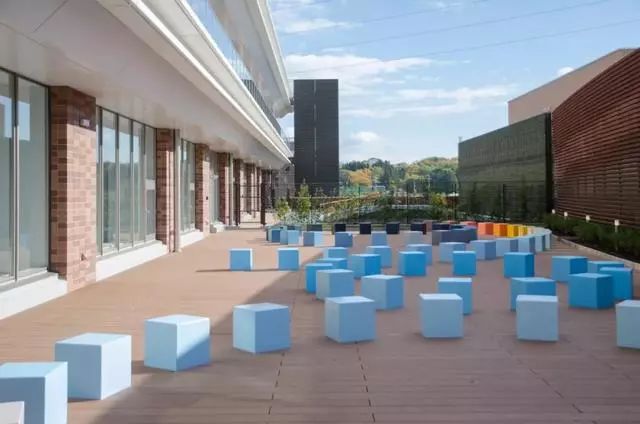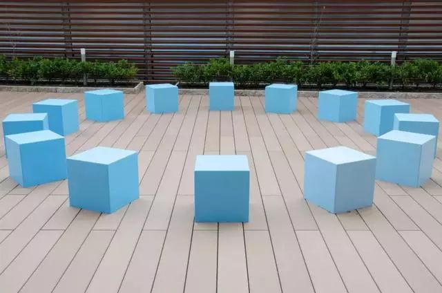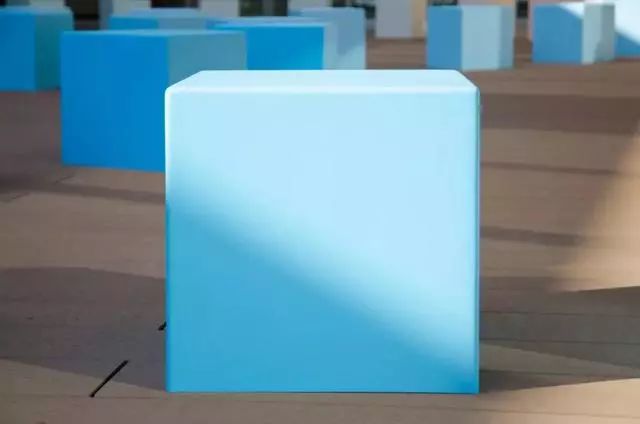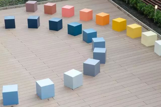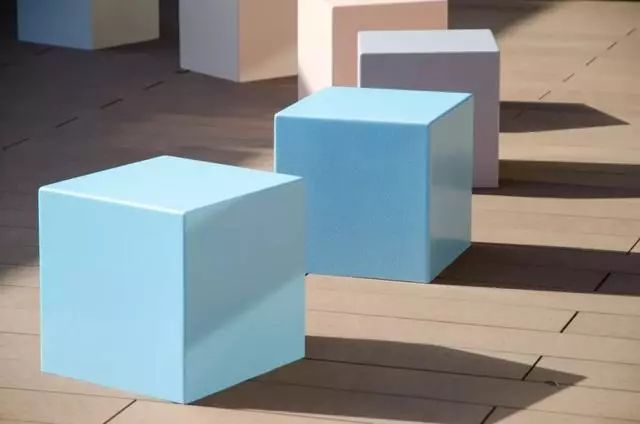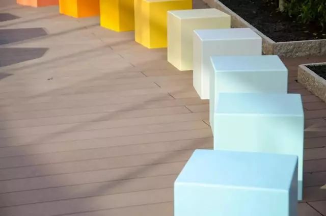 五颜六色的长凳在露天陈设,你可以在一所新的大学医院大楼的屋顶花园里找到它们。 这些立方体形状的长凳被涂上了各种各样的天空,黎明,日出,晴朗的天空,黄昏和夜空。 不断变化的天空颜色为医院的人们带来了积极的能量。