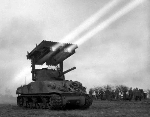 ▇M4"谢尔曼"中型坦克众多衍生型之一的T34火箭炮坦克。