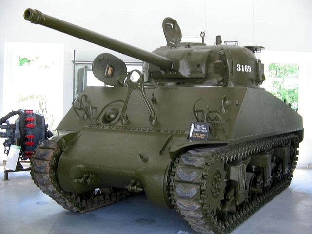 大量生产的M4"谢尔曼"坦克在太平洋战线和欧洲战线上都有投入,此外,还大量供给英国和苏联,为盟军的胜利做出了贡献。到了战后,M4"谢尔曼"坦克作为盟军驻军的装备来到日本。