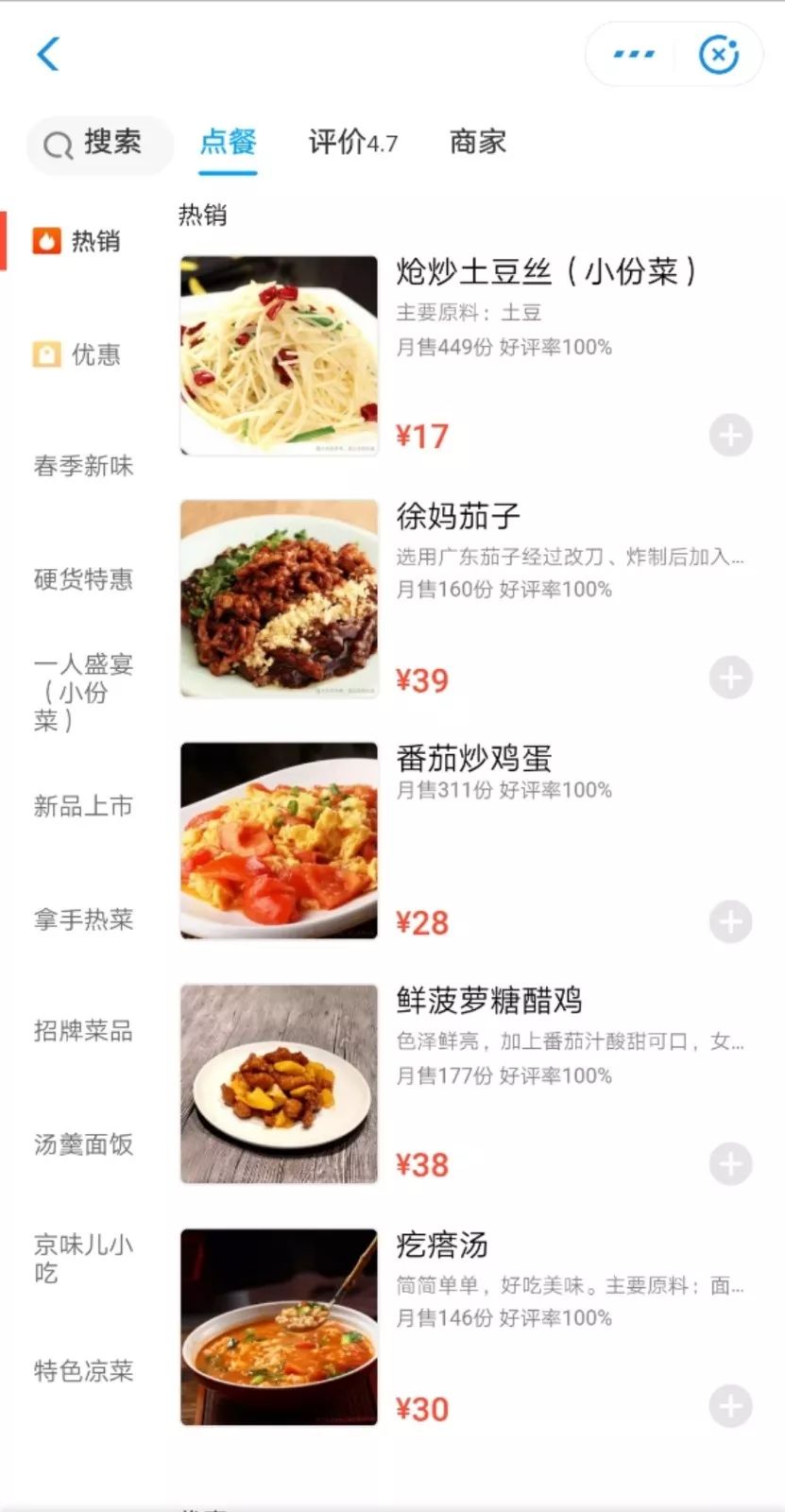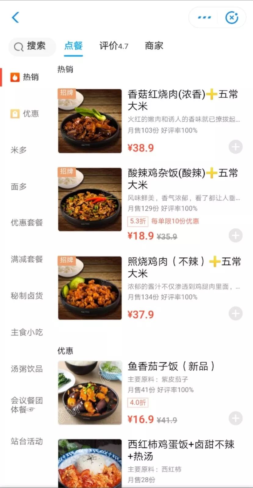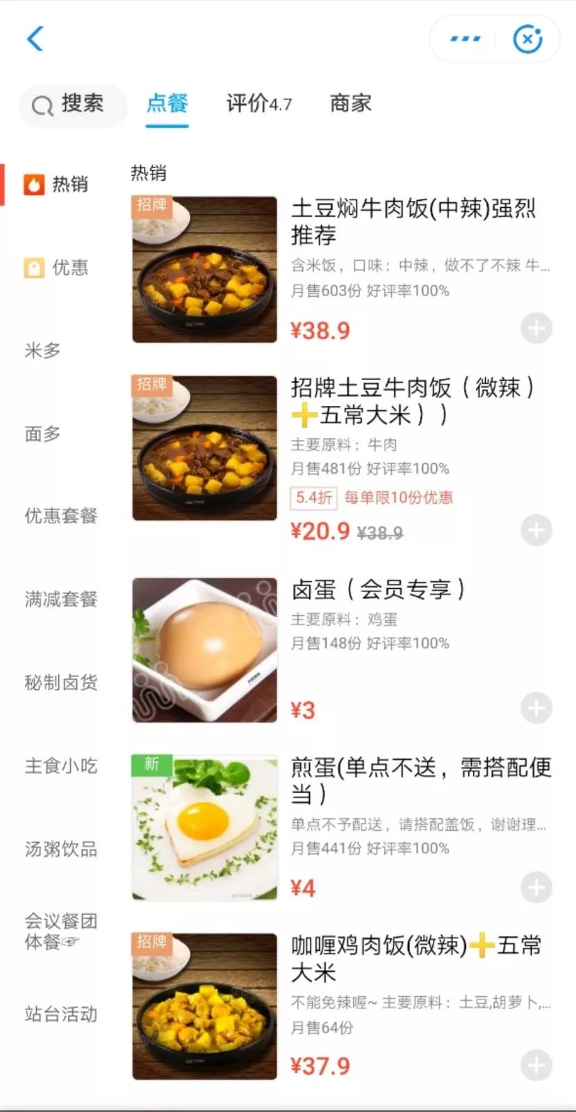 招牌菜是土豆牛肉饭,月销第一的头把交椅就是它,还有各种盖饭、炒面盖面,不知道吃什么的时候就点它吧。
