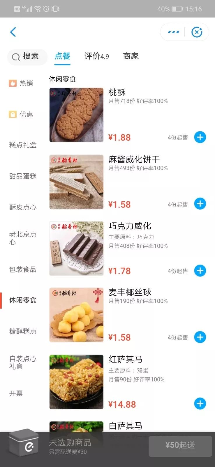②饿了么推出“极速上线”服务,稻香村30家门店4小时开通外卖,这些糕点都能在饿了么上点到。