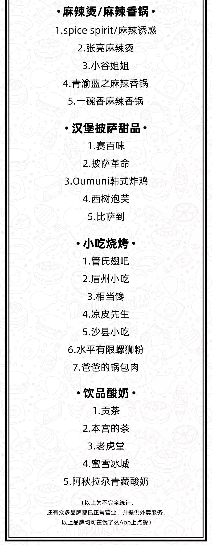 从糕点小吃,到烤肉便当、香锅冒菜