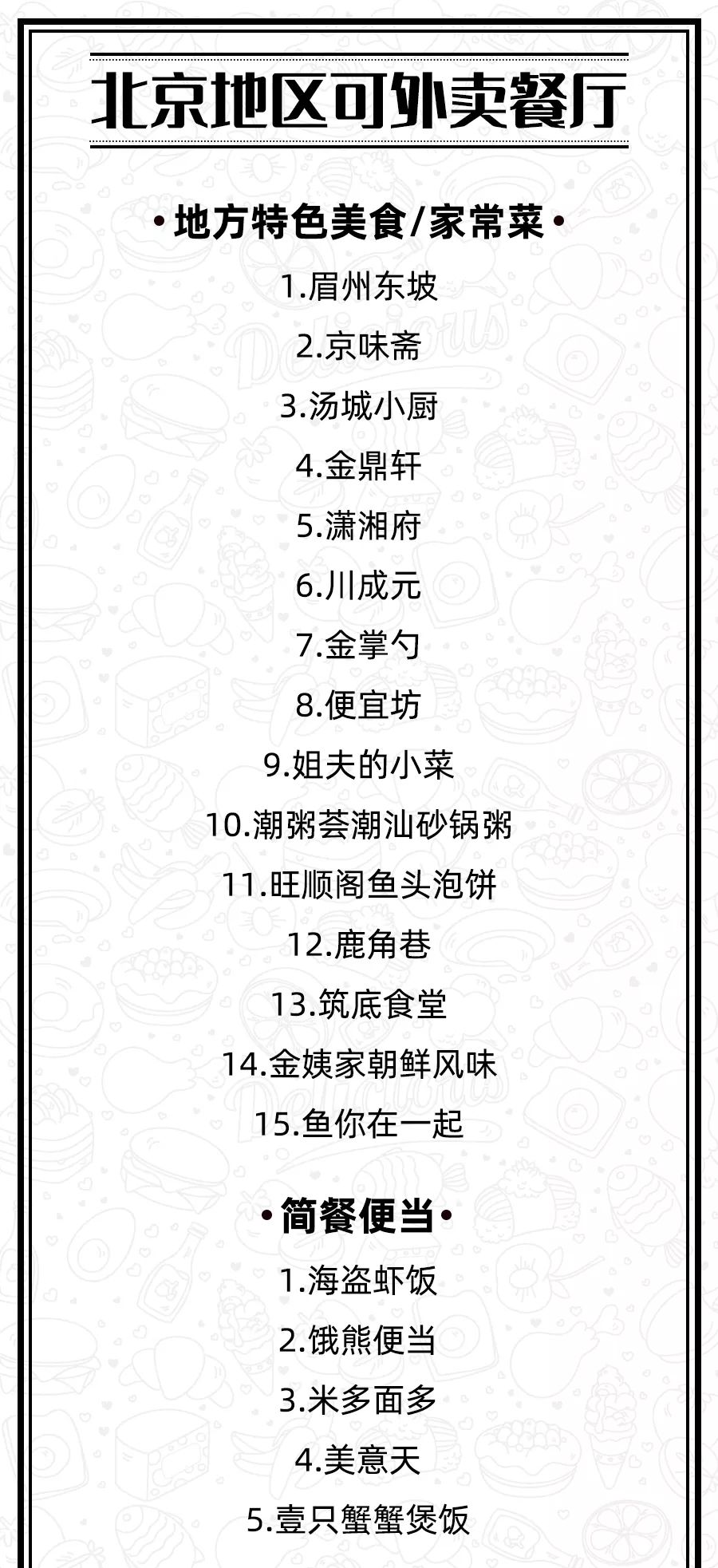 北京外卖点餐清单送给大家