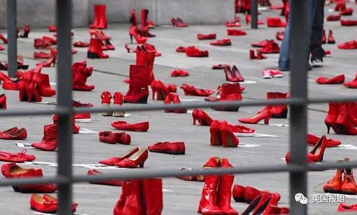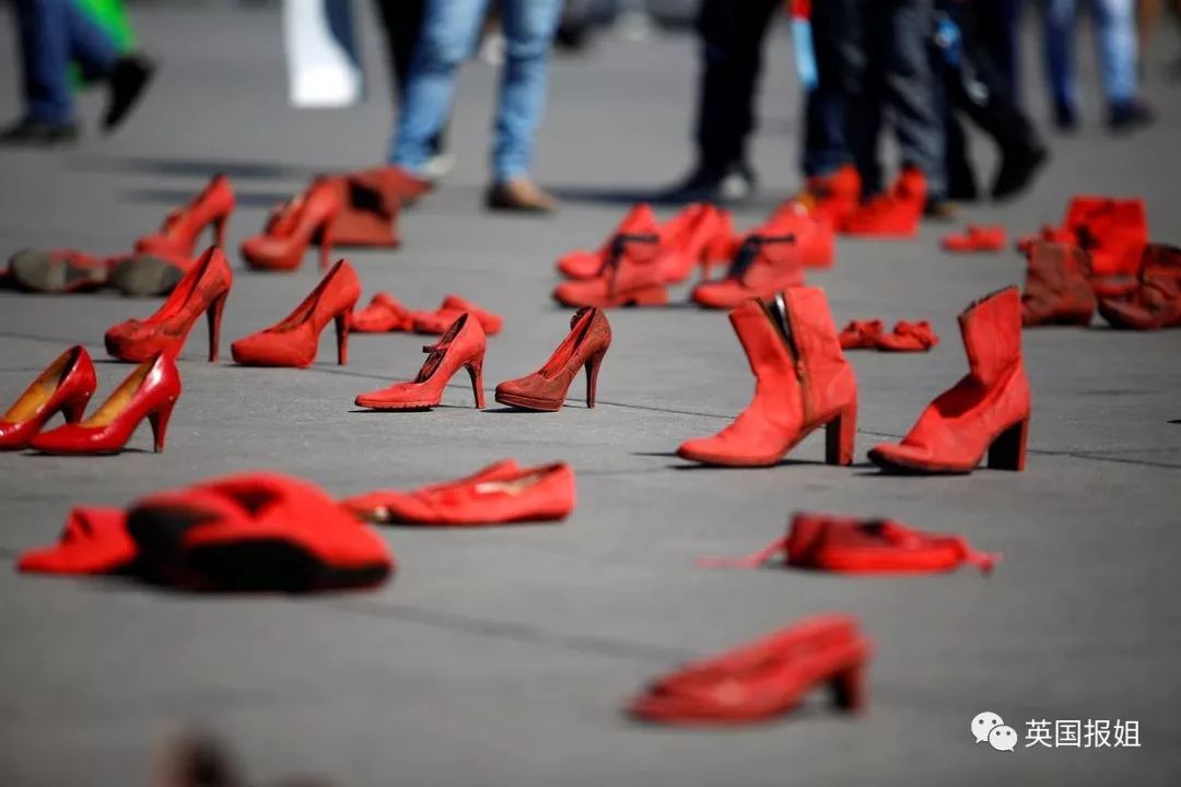 上个月,活动家们在墨西哥的宪法广场上,放置了数百双漆成红色的女鞋,呼吁人们关注性别暴力。