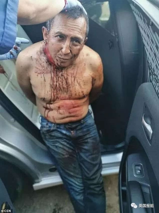 血液喷溅在凶手脸上、身上,直到他被逮捕时,都能看到身上大量的血迹,