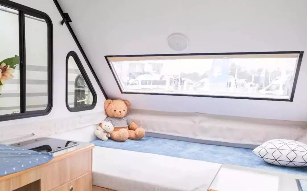 采用了三角形结构的设计,看着很像一个小城堡,外观更加接近房屋,增添了不少趣味性,整车尺寸不算大,属于4米内的小型房车,加上拖挂臂,全车尺寸为5305×1980×3231(mm)。