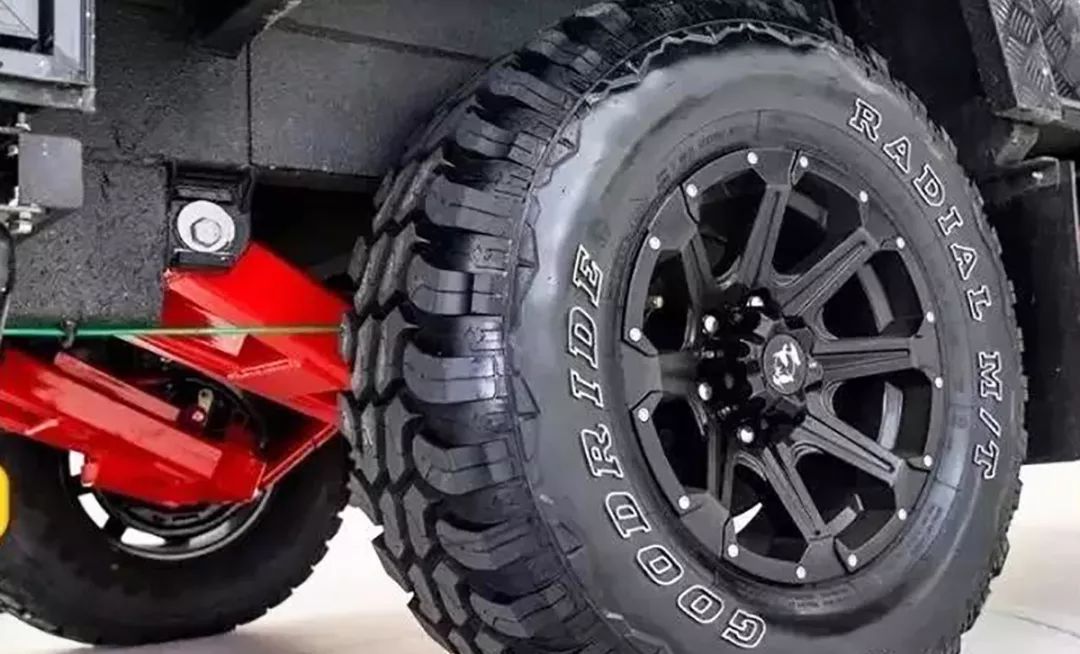 从它的越野胎和强化的底盘防护,就知道它是一辆越野硬派房车。