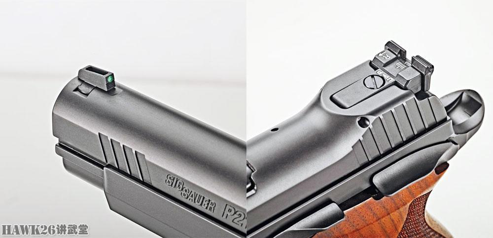P210标准型(下)与P210“目标”(上)的对比,两者区别最明显的就是木制握把部分,另外套筒上的防滑纹路、机械瞄准具等都有细节差异。本人已经在2月15日《评测:西格绍尔新版P210标准型手枪 让瑞士经典设计获得新生》介绍过前者,有兴趣的朋友可以对比看一下两者的差异。