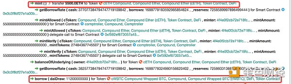 2:吸筹。利用借来的贷款,攻击者将5500 ETH存入Compound作为抵押品,借入112 WBTC。这是正常的Compound操作,此吸筹的WBTC将在步骤4中出货。