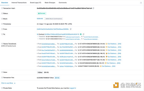 在上述套利交易中,我们在Aave上借了超过3100个DAI。
