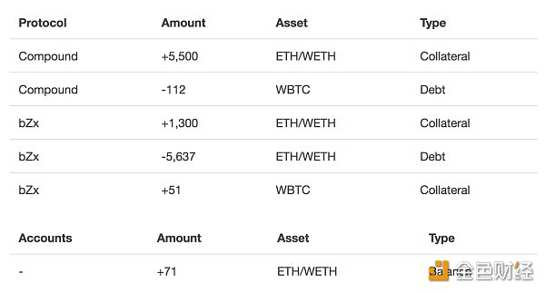 这一步后,可以重新计算一下资产负债。最终,攻击者获得71个ETH的套利,外加两个头寸,一个头寸为Compound(+ 5500WETH / -112WBTC),另一个头寸为bZx(-4337WETH / + 51WBTC)。当bZx头寸处于缺省状态时,Compound头寸非常有利可图。在利用漏洞之后,攻击者立即开始安排偿还Compound债务(112BTC)来赎回抵押品(5500WETH)。对于bZx头寸,攻击者不再显示任何兴趣。