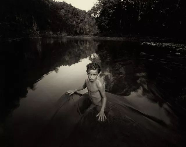 为了达到怀旧的效果,曼恩选取了老式相机和暖色调相纸,使画面呈现出柔焦画意,无论是人物还是风景都被包裹在朦胧的暗角和阴影之中。