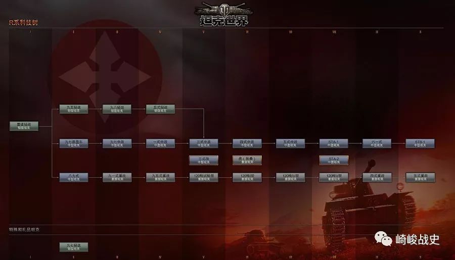 ■《坦克世界》国服的日系科技线。对于中国玩家而言,还是汉化后的日系科技线比较容易理解和记忆。