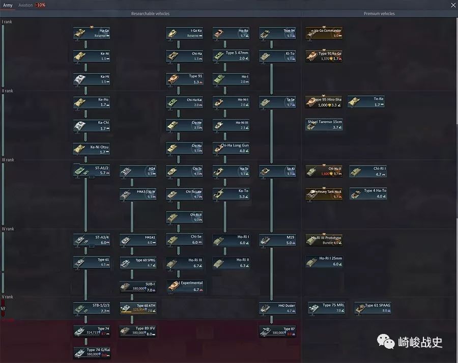 ■网游《战争雷霆》中的日系坦克科技树,采用拉丁字母的型号名称。