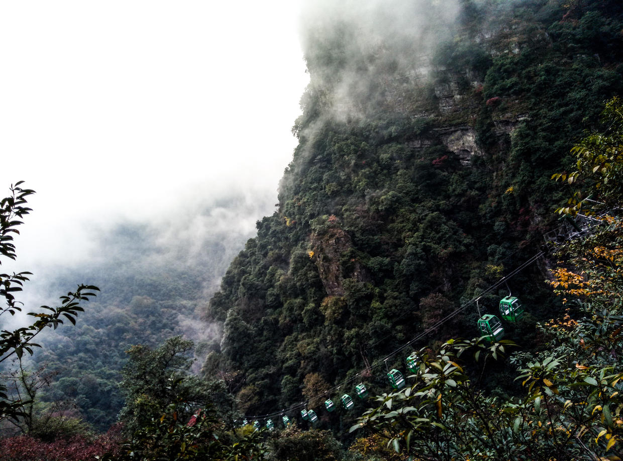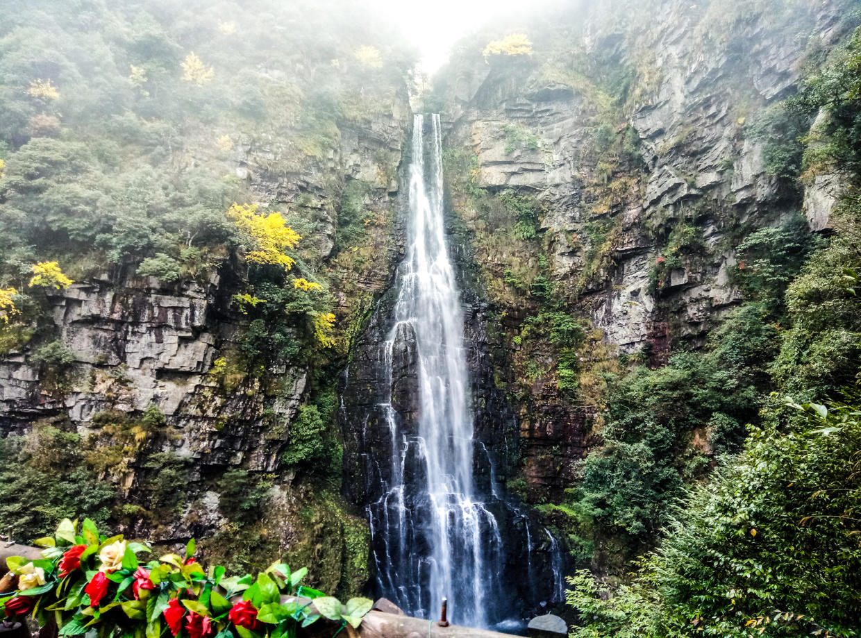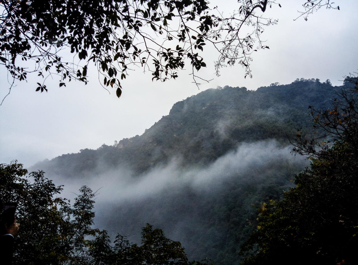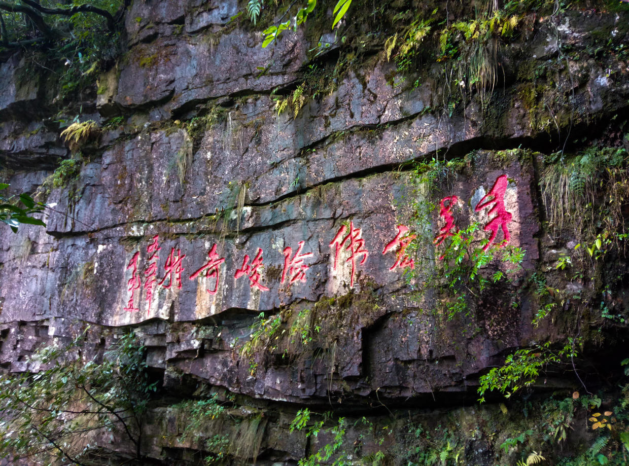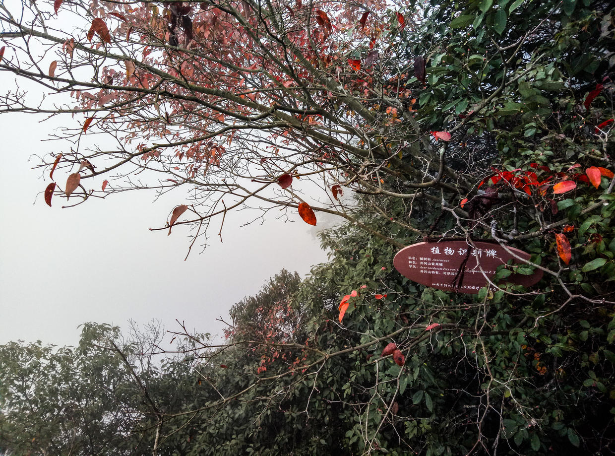 “过了黄洋自然险处不须看”,可见其陡险。日出,峰峦,云海与杜鹃。