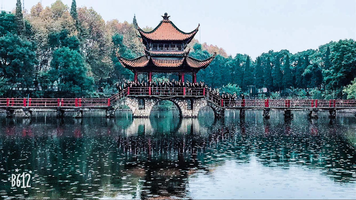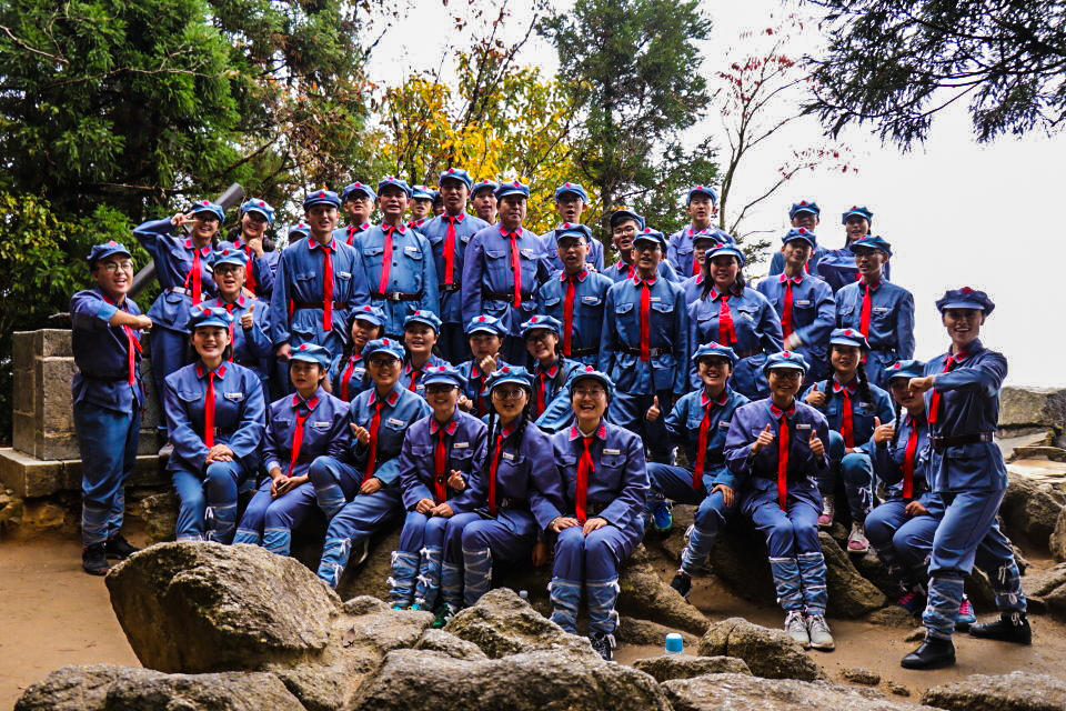 不知不觉,车子到了永新三湾改编纪念馆。一下车我们快速以大班队列集和,场面好不热闹。眼前的美景,没有任何的装饰渲染,点缀着薄薄的雾气就已如仙境一般。随后我们在三湾改编纪念碑下摆出了“井大九一”的大字,场面好不壮观。也逐渐明白了在日常练习中,这些党代表们多么的用心,为了这次的摆拍我们不知进行了多少次的演习,就算平时多么杂乱,他们都会不厌其烦的包容我们。所以,真正到了这一天,我们九期红志班所有成员都出色的完成了这项任务。