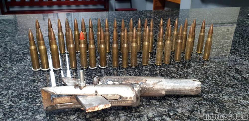 南非警方成功抓获多次作案的“出租车杀手”,在他的身上发现了一支自制手枪。以及这支手枪使用的7.62×51mm弹药,真是贼胆包天,这样的枪稍微有点脑子的都不会使用吧。靠近镜头的是扳机,使用时,用力猛地抠扳机,带动扳机上面的击锤敲打击针。