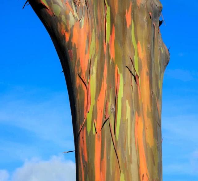 彩虹树,并不是整棵树就像彩虹。而是当它的树皮脱落后,才开始出现彩虹状的色调,无比美丽惊艳,令人难以忘怀。